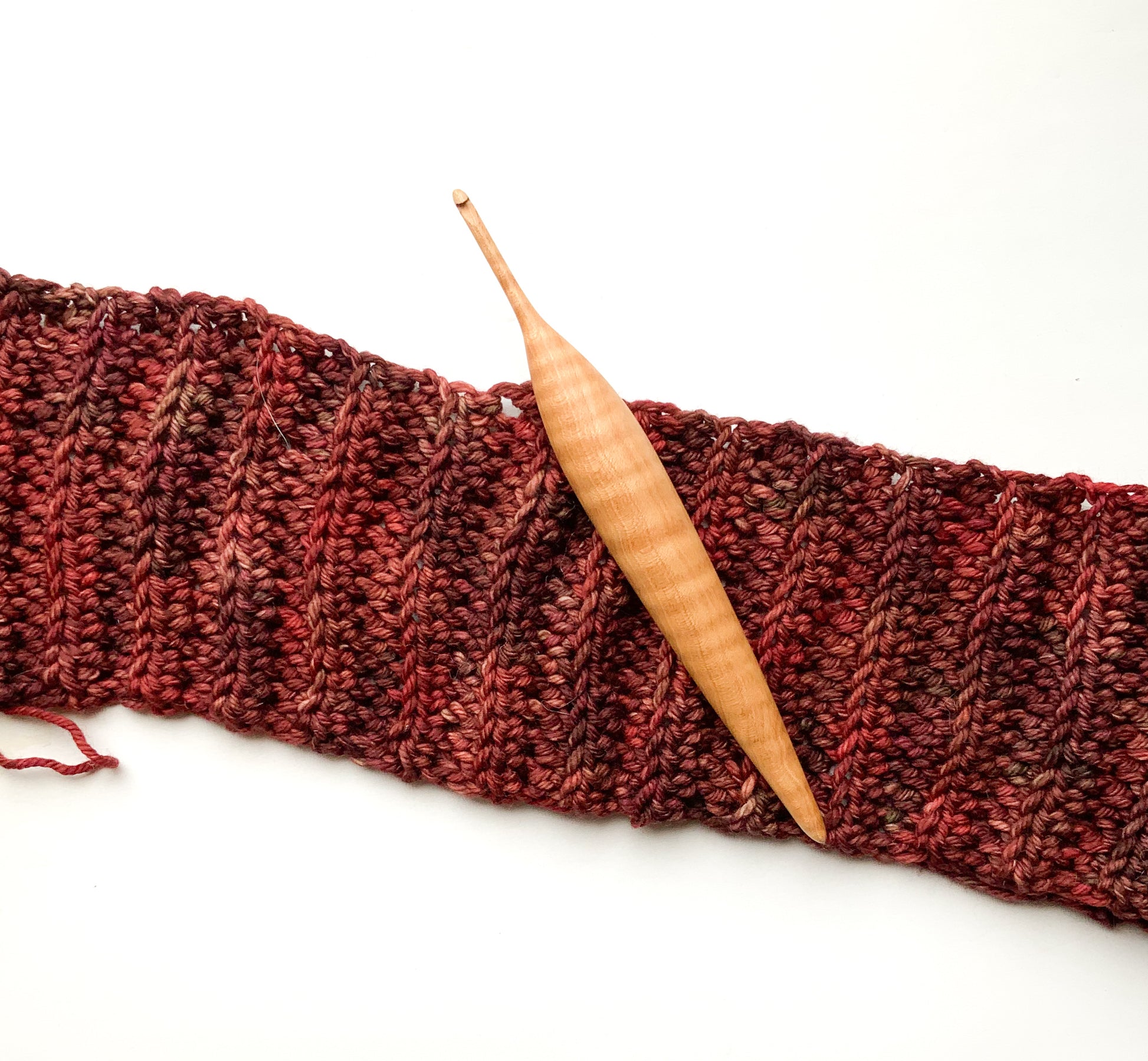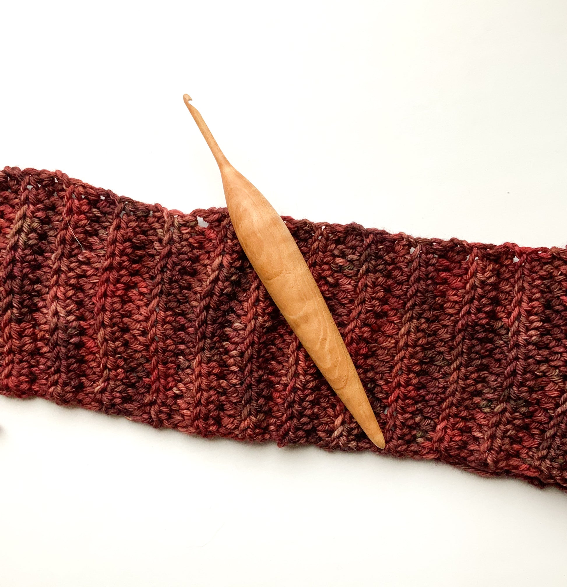 Bring warmth, balance, and artistry to every stitch. This handmade crochet hook is artisan crafted from solid maple wood and shaped with our signature ergonomic design for comfort during long crochet sessions. This piece is also highly figured with flame rays that softly shimmer as they catch the light.