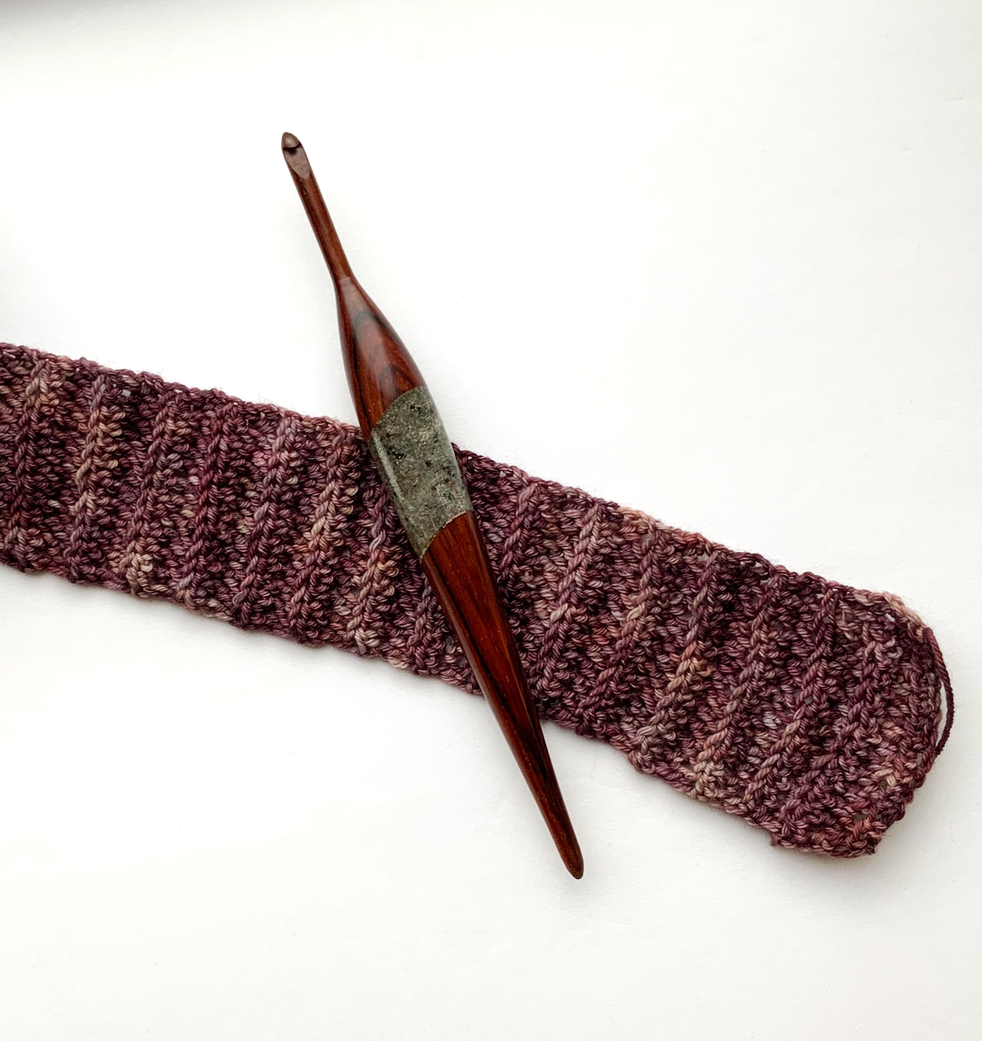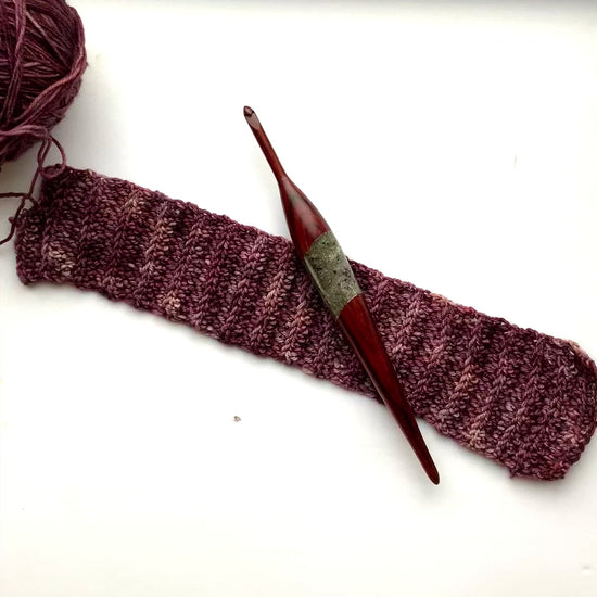 Pairing cocobolo with stone elevates the craftsmanship even further. The wood/stone combination demands a high level of expertise, careful balancing, and meticulous finishing to ensure both comfort and durability. This results in a crochet hook that feels substantial yet smooth in the hand, designed for long, enjoyable crafting sessions.