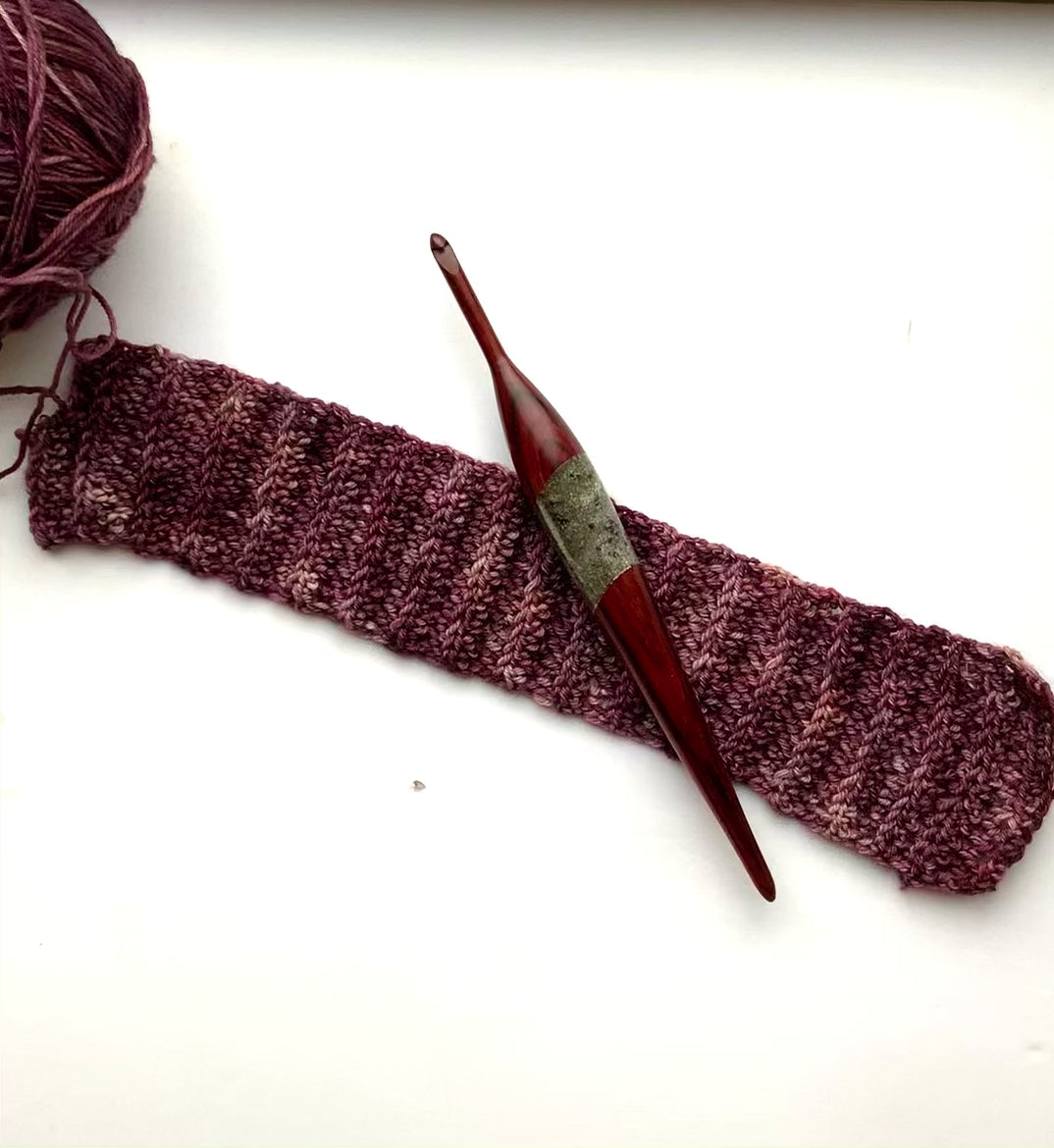 This crochet hook is a true artisan piece, handcrafted from rare cocobolo wood and accented with natural stone, creating a striking balance of warmth, weight, and beauty. No two hooks like this can ever be the same.