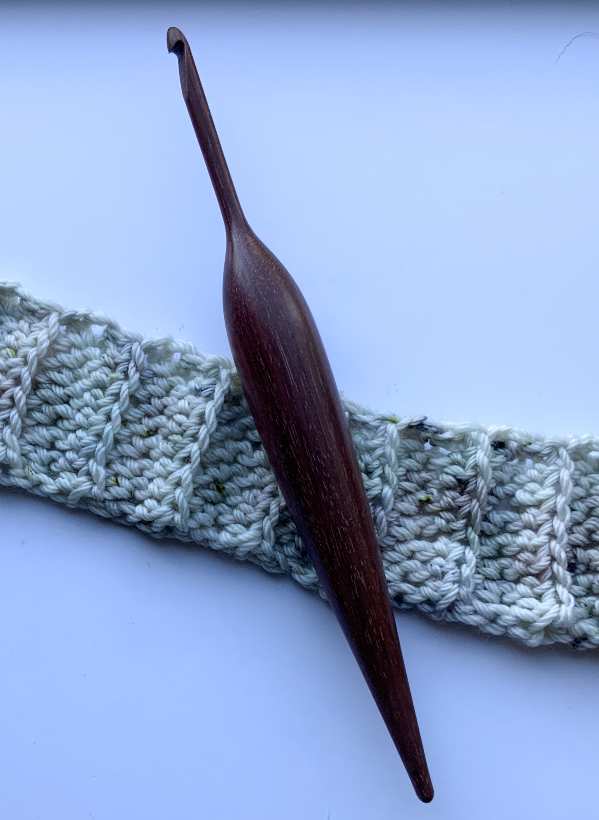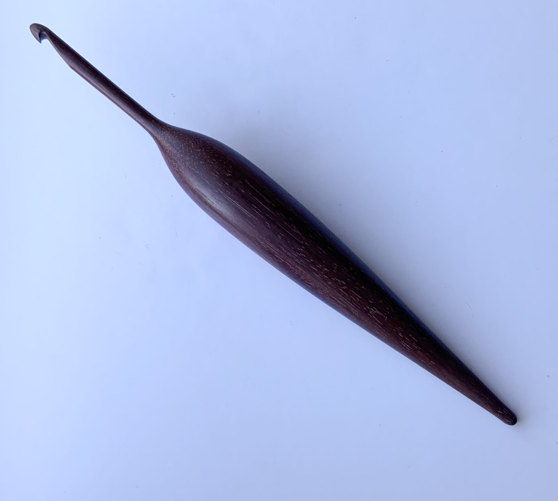 Katalox, or Mexican Ebony, is one of the strongest woods within the world. It has a beautiful dark brown or purple heartwood with a stunning light brown sapwood contrast, making each katalox piece unique. Some pieces, like this one, have dots displaying in the sapwood. These were made by insects which sadly killed the tree, but adds to the distinction of the crochet hooks to appear similar to birthmarks.