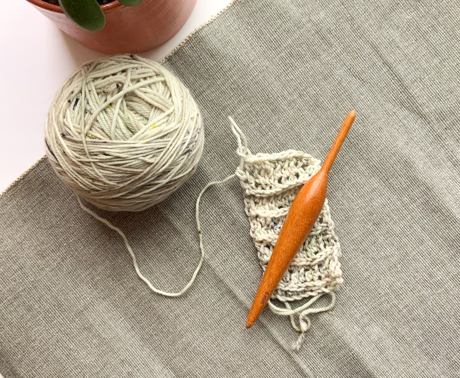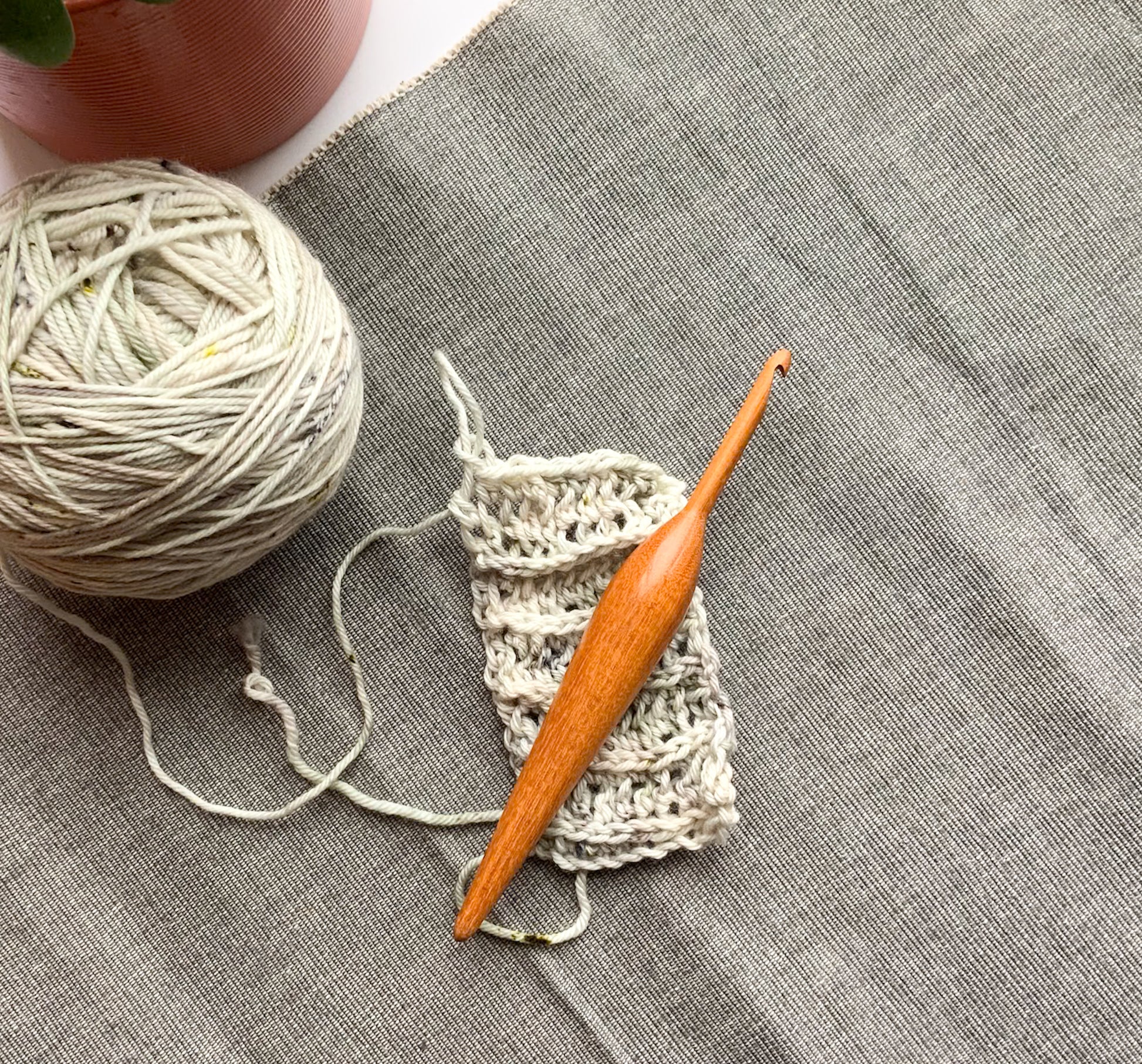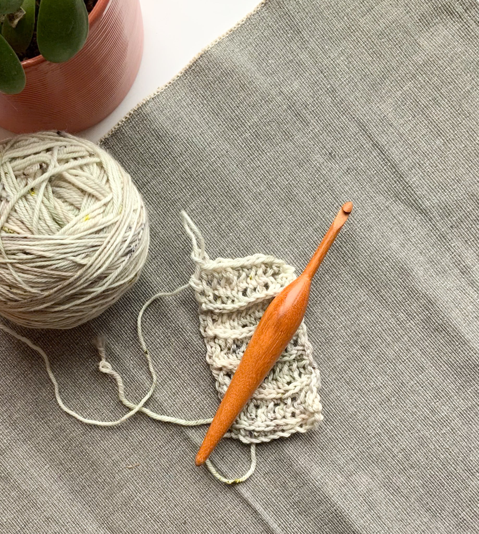 This bold hook is crafted from chitka viga wood, found in the tropical areas of Mexico and Central America. This bright orange hook is wonderful when working with darker colored yarn and glides smoothly through each stitch. It has an even grain that is on display while creating your piece.